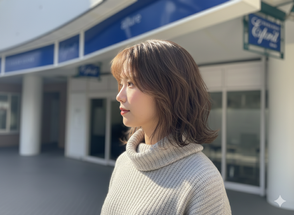 顔周りをやさしく包む。大人っぽさが引き立つミディアムウェーブ